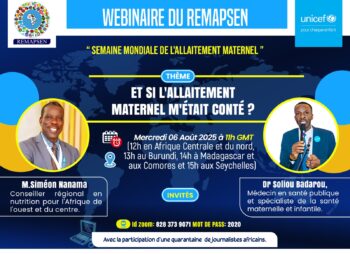 À l’occasion de la Semaine mondiale de l’allaitement maternel, célébrée chaque année du 1er au 7 août, le Réseau des Médias Africains pour la Promotion de la Santé et de l’Environnement (REMAPSEN) a organisé, ce mercredi 6 août 2025, un webinaire inspirant autour du thème : « Et si l’allaitement maternel m’était conté ? ».
