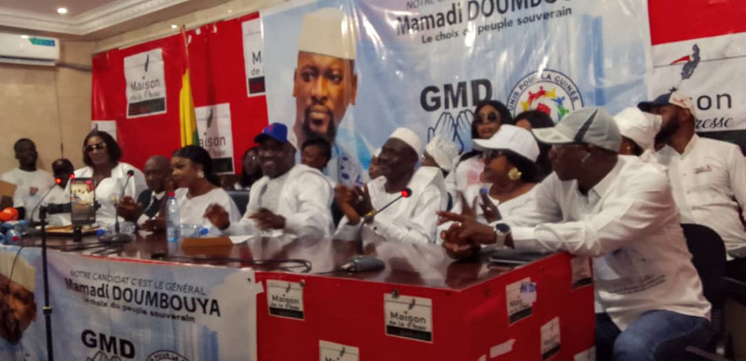 Devant un parterre de journalistes, de sympathisants et d’observateurs politiques, le collectif a présenté le Général Mamadi Doumbouya comme son porte-étendard pour la course à la magistrature suprême. L’événement, organisé dans une atmosphère solennelle, a été ponctué par la lecture d’une déclaration officielle prononcée par l’un des membres du mouvement.